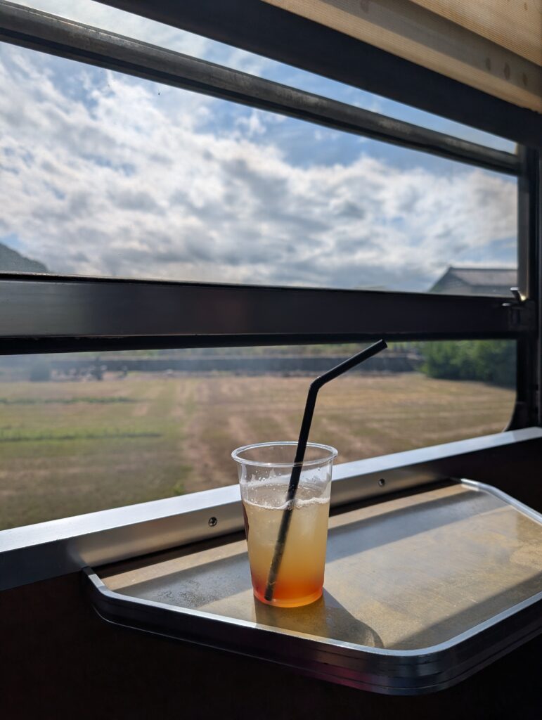 (トイレの近くの席だったので窓を開けて匂いを紛らわせています。笑 皆さんは是非トイレから遠い場所を選んでくださいね!)